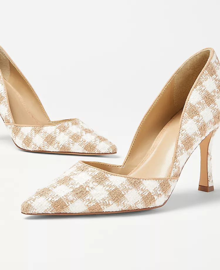 Artfully contoured, our refined tweed pumps elevate any ensemble. Pointy toe. Padded footbed for complete comfort. 3 1/4″ heel.