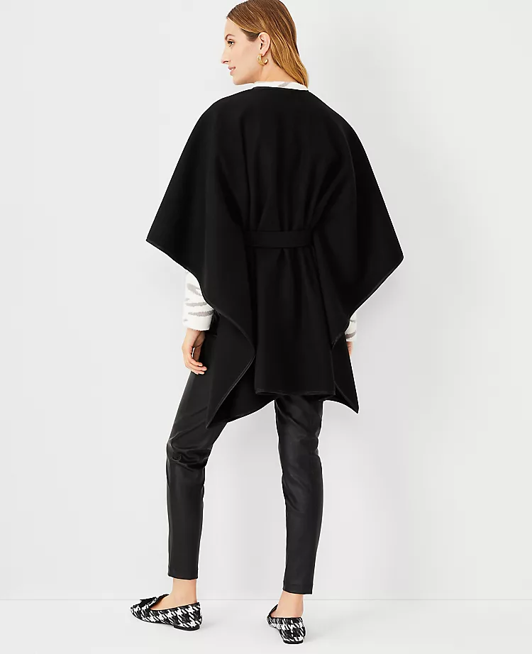 A layer to love, our belted poncho is the perfect way to wrap things up. Open front. 3/4 sleeves. Self tie belt.