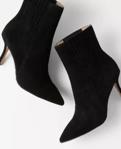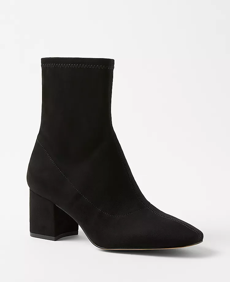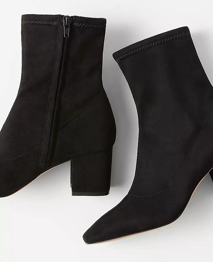 Buttery soft, our block heel stretch booties go the extra mile. Pointy toe. Padded footbed for complete comfort. 5 1/3″ shaft height with 4 3/4″ circumference. 2 1/4″ heel.