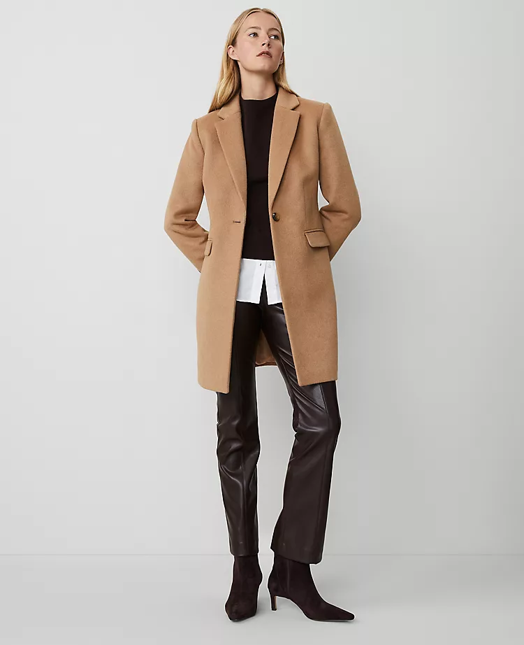 Impeccably tailored, this covetable classic instantly elevates your cool weather wardrobe. Notched lapel. Long sleeves with functional sleeve values for added styling options. One-value front. Front flap besom pockets. Back vent. Lined.