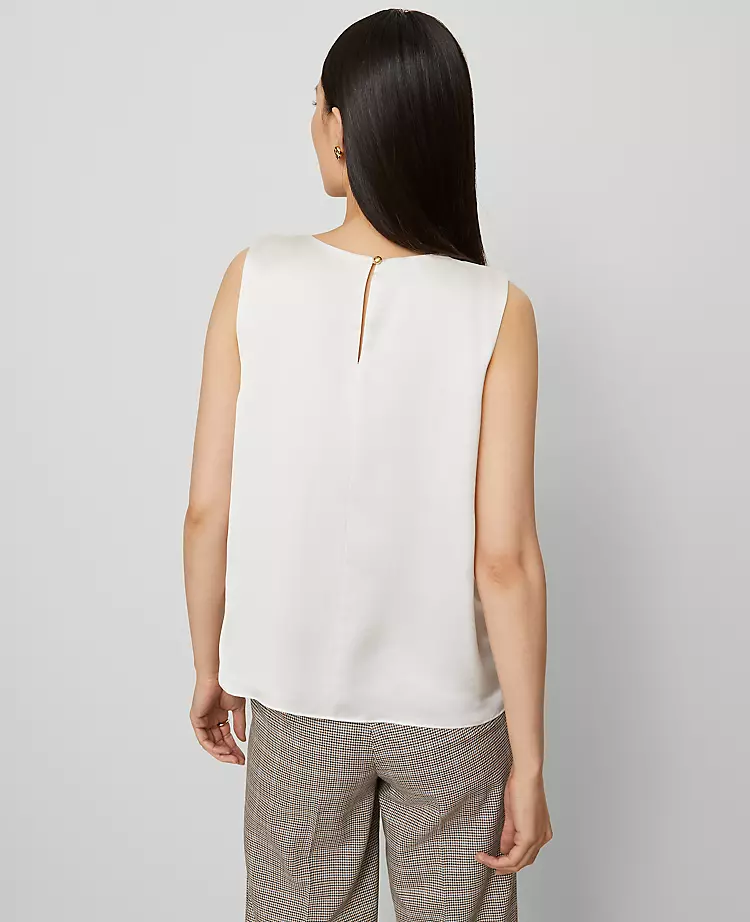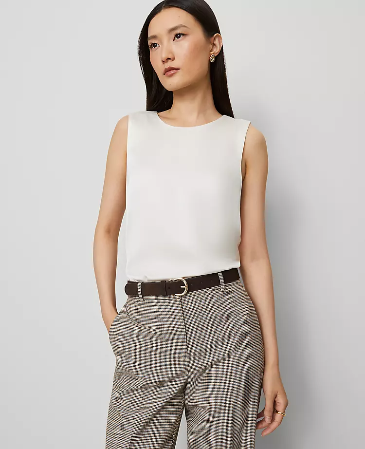 Soft, minimalist and cut with a flattering waist-hitting hem, this shell is a modern mix-and-match necessity. Crew neck. Sleeveless.