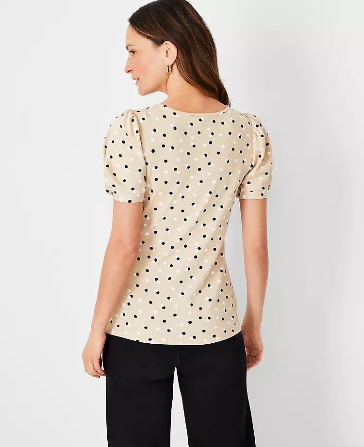 Knot sleeves lend an airy twist to this refined knit top. Scoop neck. Short sleeves.