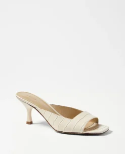 Crafted in exotically embossed leather, our square toe sandals flatter from every angle. Open toe. Padded footbed for comfort. 2 3/4″ heel.