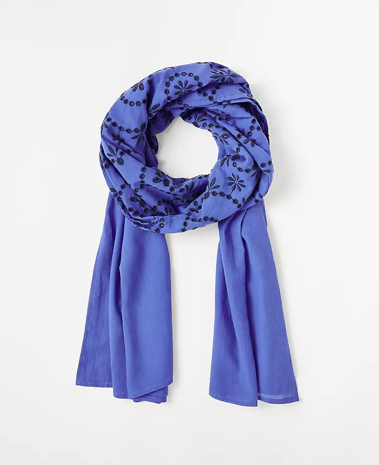 In a fresh floral motif, our embroidered scarf is the perfect accessory to tie your look together. 44″ x 76″.