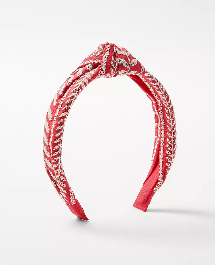 Crowned with a picture perfect knot, our embroidered headband is an instant way to elevate any ensemble. 6″H x 4 3/4″W.