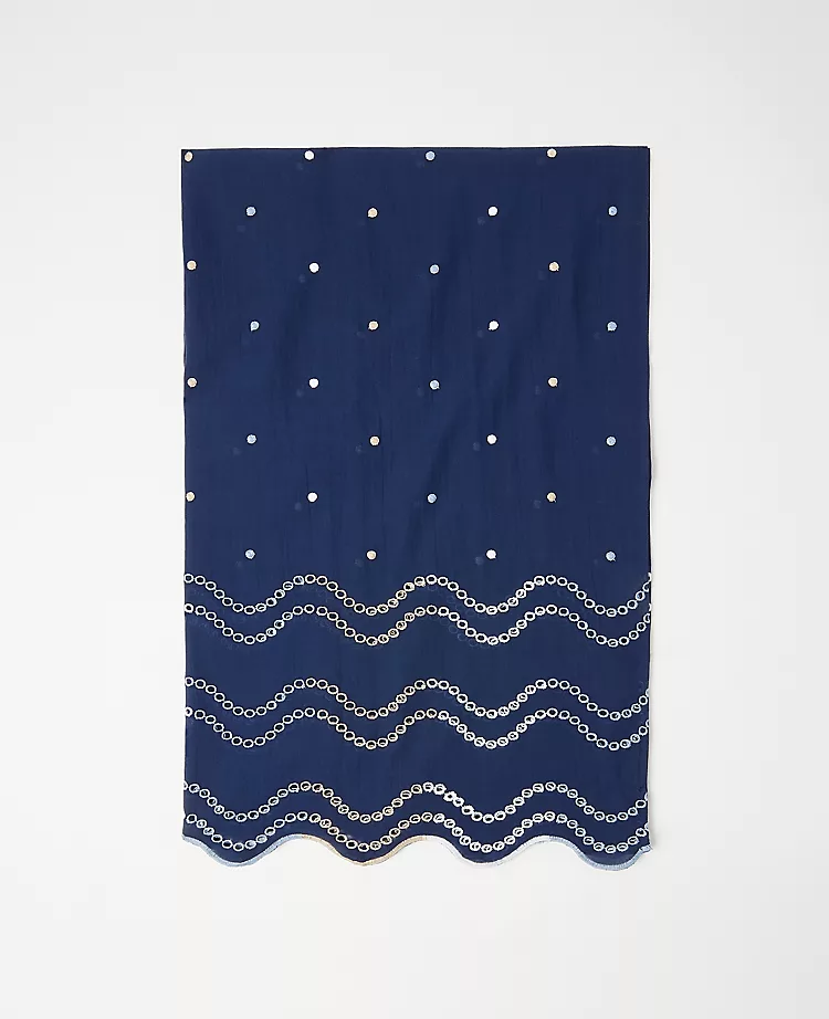 An embroidered scalloped hem gives our flattering scarf an extra pretty edge. 32″ x 76″.