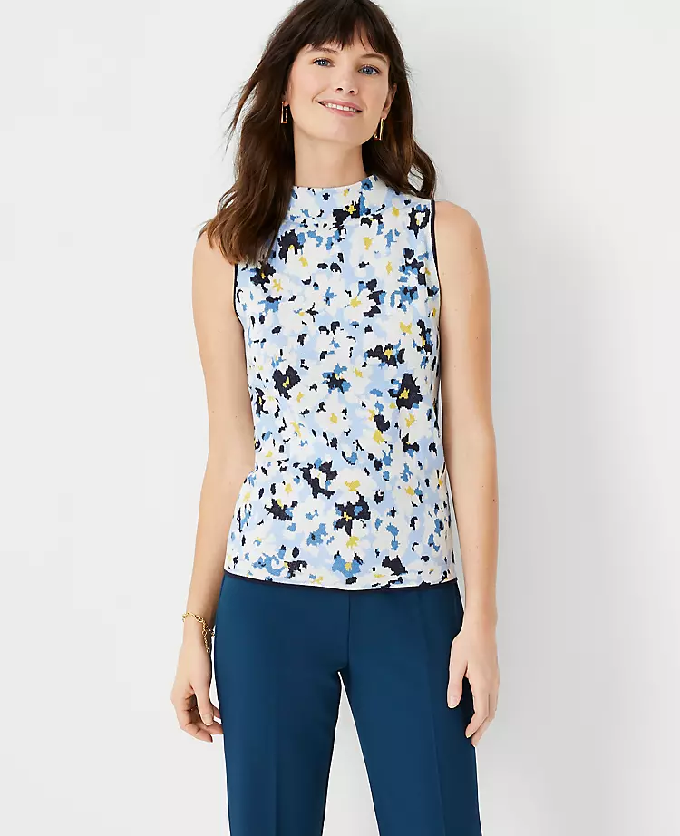 Topped with a flattering mock neck, our sweater shell is one you’ll want in every color and pattern. Mock neck. Sleeveless.