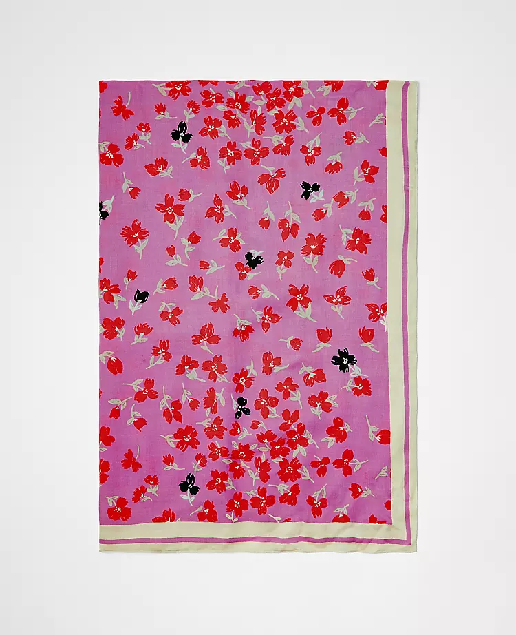 Always a polished add-on, our floral scarf blooms with a bouquet of vibrant seasonal hues. 50″ x 50″.