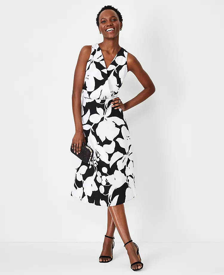 Blooming with fresh florals, our sleeveless wrap dress has a perfect drape that comfortably fits and flatters for a sleek look. Crossover V-neck. Sleeveless. Hidden back zipper with hook-and-eye closure. Lined.