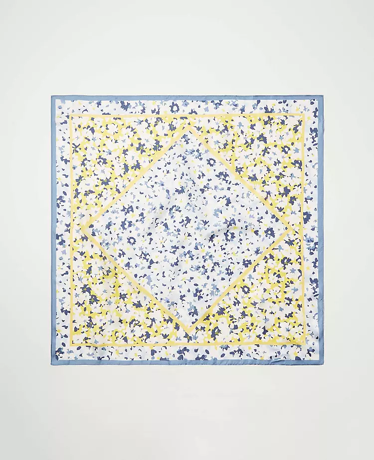 In refined silk, feminine florals meet rich seasonal color to beautifully tie your look together. 25″ x 25″.