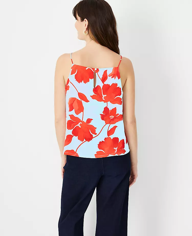Nothing’s more summer-ready than our floral square neck tank, made with covetable color. Square neck. Spaghetti straps. Back keyhole with button closure.
