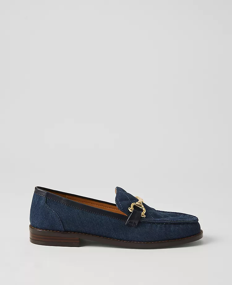 In fresh denim with a classic horsebit, these loafers give every look a luxurious yet understated lift. Padded footbed for comfort. 1” heel.