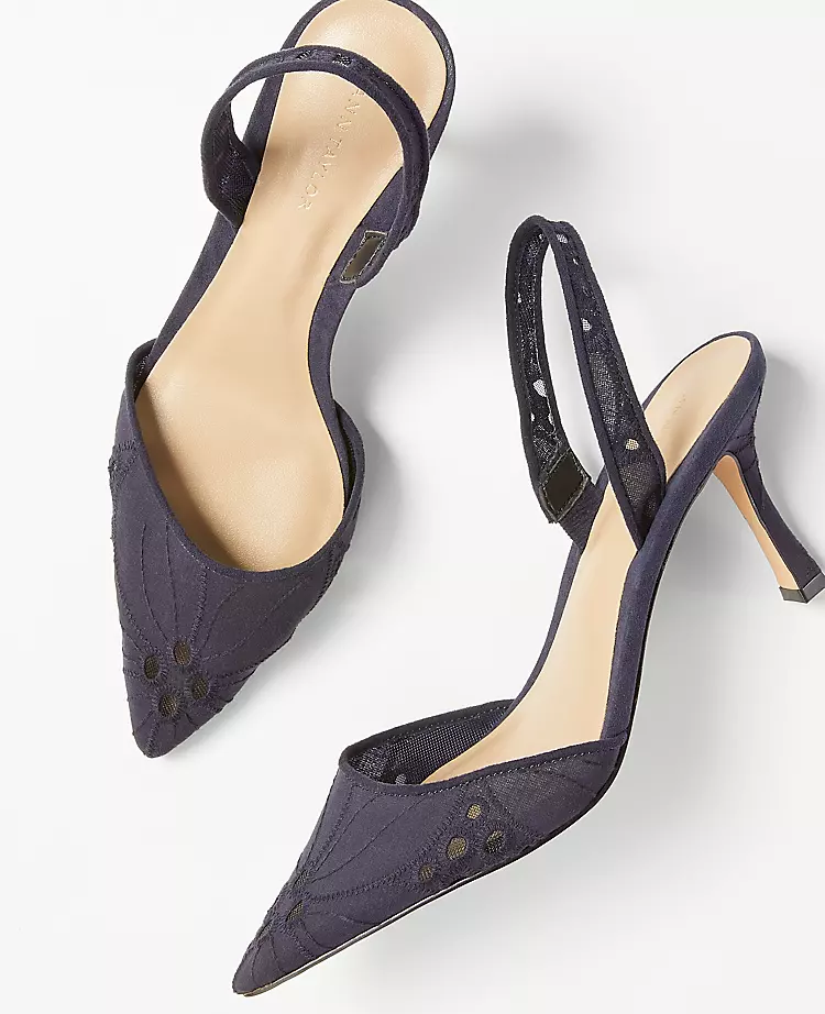 Expertly crafted with eyelet leather, these ankle strap pumps lead the way. Pointy toe. Padded footbed for complete comfort. 3″ heel.