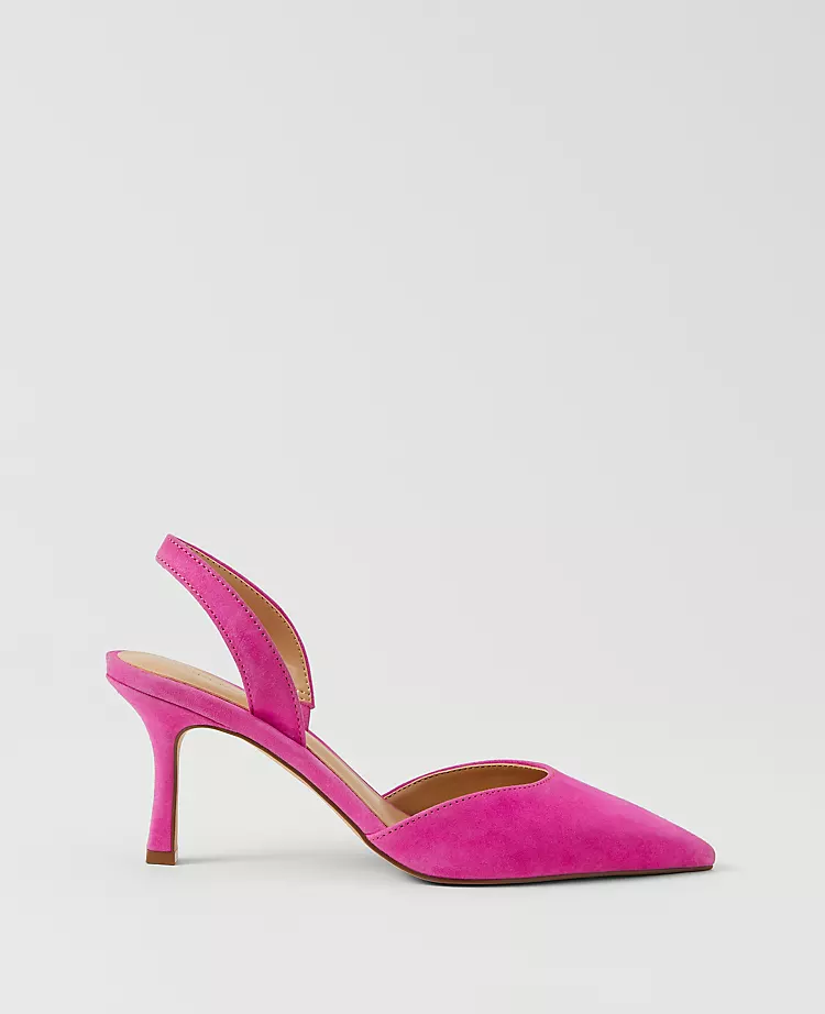Expertly crafted in rich suede, these slingback pumps lead the way. Pointy toe. Padded footbed for complete comfort. 3” heel.