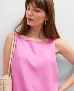 In a breezy linen blend, our cropped tank top is the go-to you’ll wear all season long. Square neck. Sleeveless. Square back.