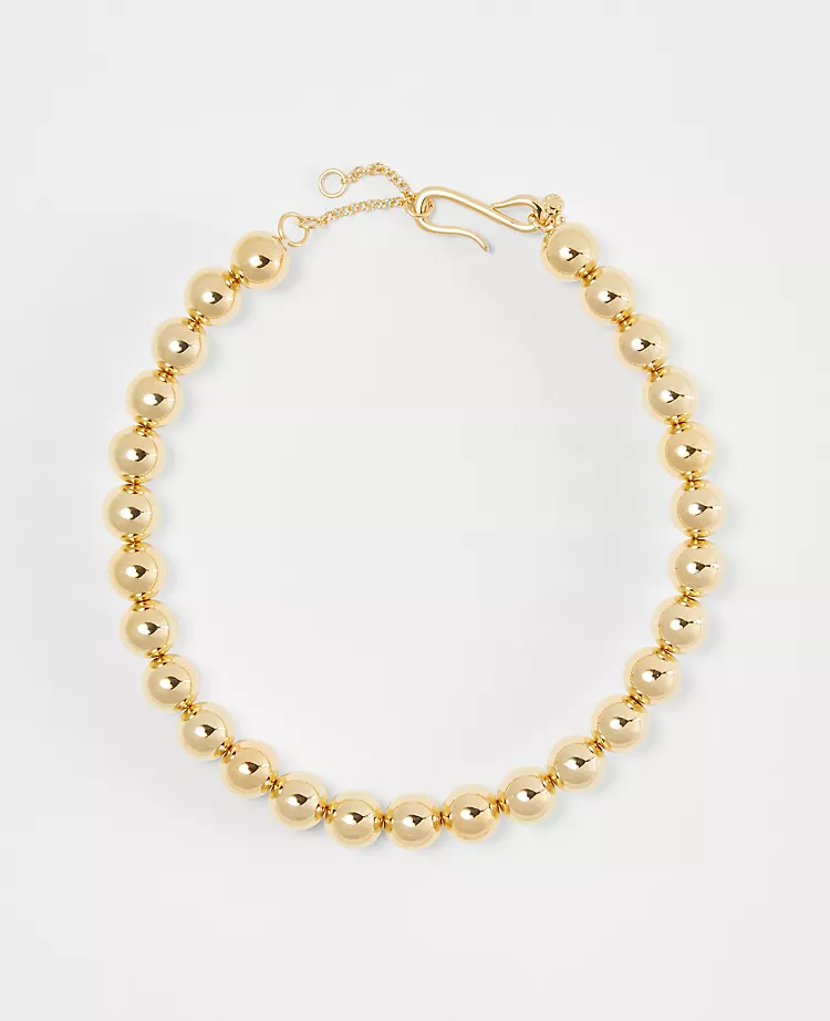 Brightly polished, our metal ball necklace rounds out your favorite ensemble. Hook closure. 16″ length with 2″ extender.