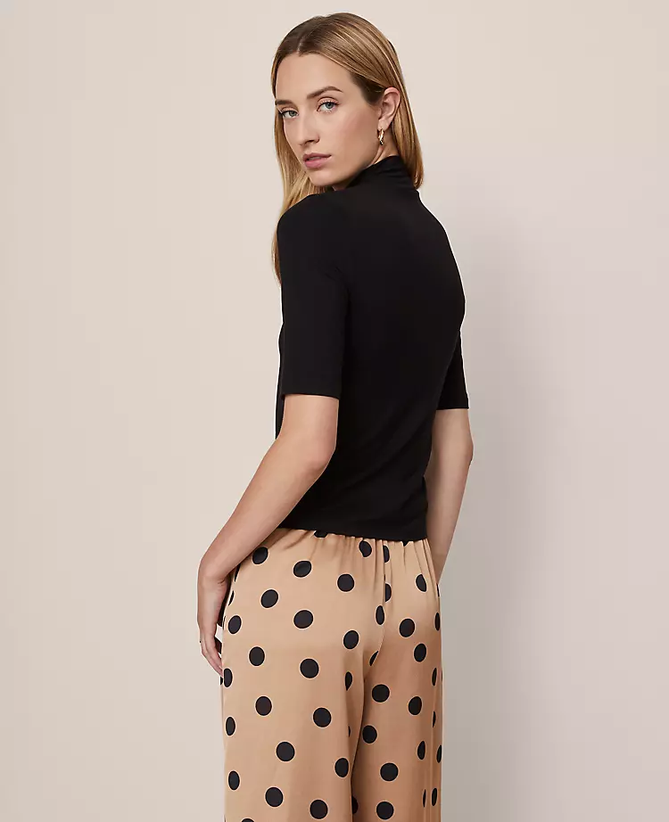 Designed for a streamlined fit, our mock neck elbow sleeve top radiates easy, stylish confidence. Mock neck. Elbow sleeves.