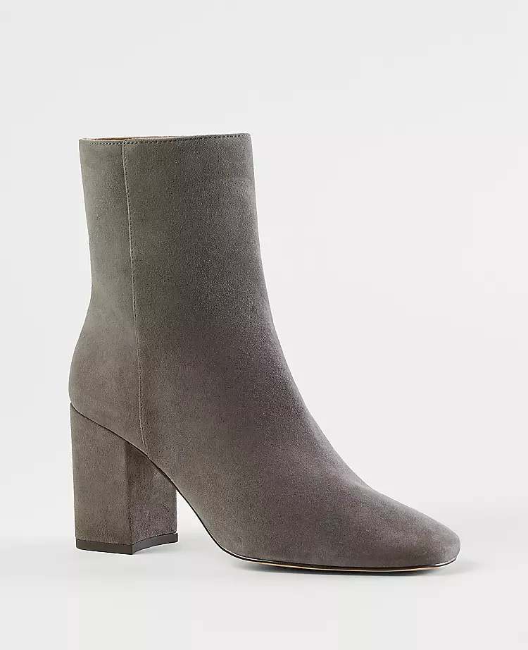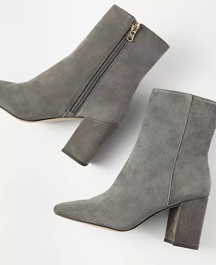 Step up your style game with our suede heeled booties – the ultimate everyday luxury. Pointy toe. Inside zip. Padded footbed for complete comfort. 5 7/8″ shaft height with 5″ circumference. 3 1/4″ heel.