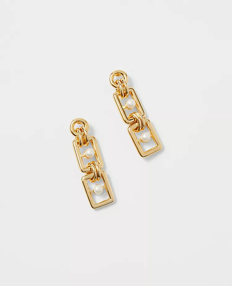 Polished to perfection, our pearlized chain link earrings make any outfit shine. 1 1/2″ drop.