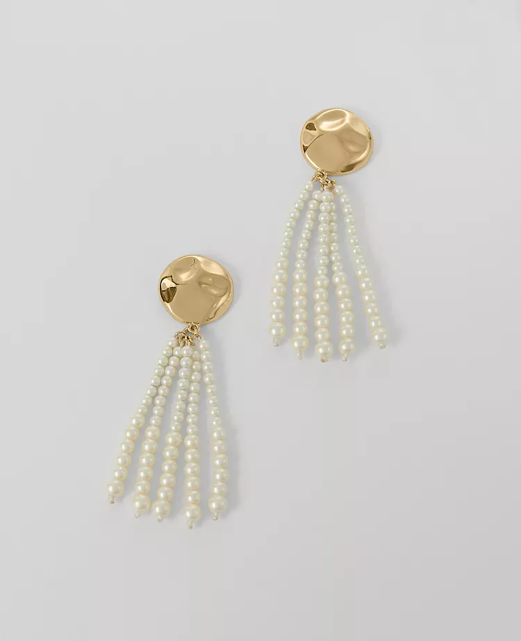 In pretty pearlescent and modern metal, these circle tassel earrings are a touch of opulence for every day and evening. 2 3/4” drop.