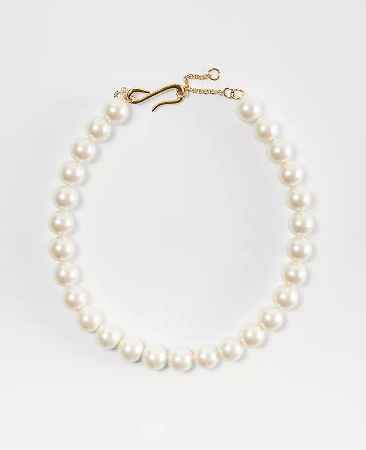 Elegantly oversized, our lustrous pearlized necklace is the quintessential polished accessory. Hook closure. 16″ length with 2″ extender.