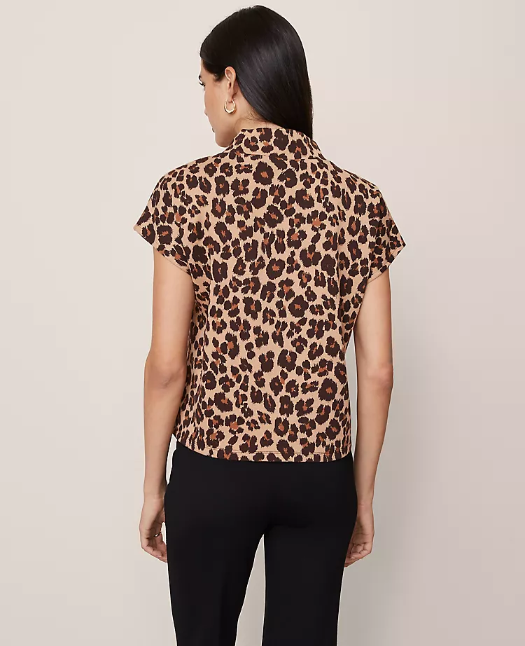 Chic and sophisticated, this mock neck top features a high-shine horsebit embellishment that adds the perfect elevated touch. Mock neck. Short sleeves.