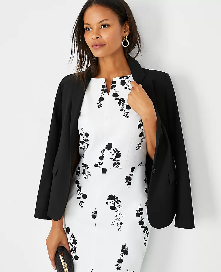 In a refined cotton linen blend, our fitted sheath dress blooms with fresh-cut florals. Boatneck with front notch. Sleeveless. Front slit. Hidden back zipper with hook-and-eye closure. Lined.