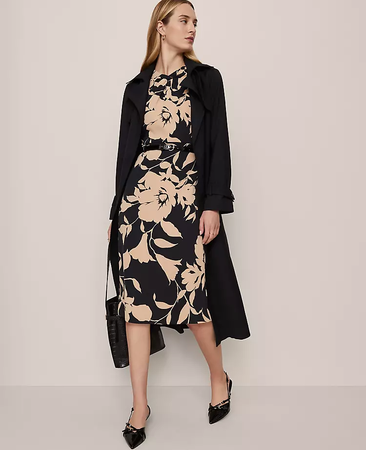 An artfully twisted neckline and streamlined silhouette make this sheath dress both polished and versatile. Crew neck. Sleeveless. Hidden side-zip closure. Adjustable-buckle belt. Lined.