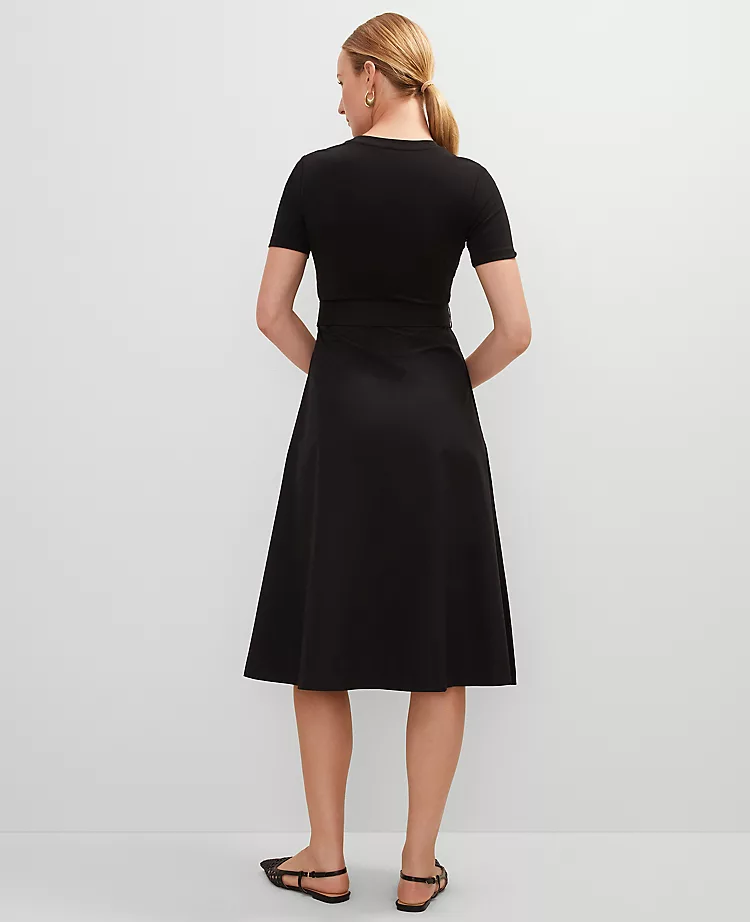 Flattering and feminine polish doesn’t come more effortlessly than this fit-and-flare midi dress. Round neck. Short sleeves. Removable D-ring belt. Side slit pockets. Hidden side-zip closure.