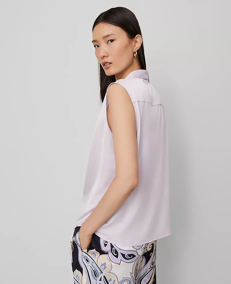 Designed with a woven front and knit back, this flattering top plays with texture in a chic and versatile way. V-neck. Sleeveless.