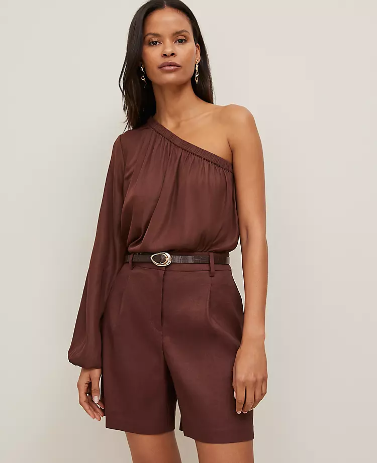 With its sleek neckline, this flowy top is a fresh silhouette you’ll turn to all season long. Elasticized one-shoulder neckline, cuff and hem.