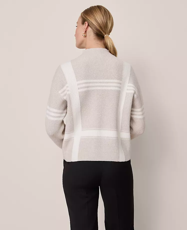A chic mock neck and relaxed sleeves shape this cozy ribbed sweater. Mock neck. Long raglan sleeves.