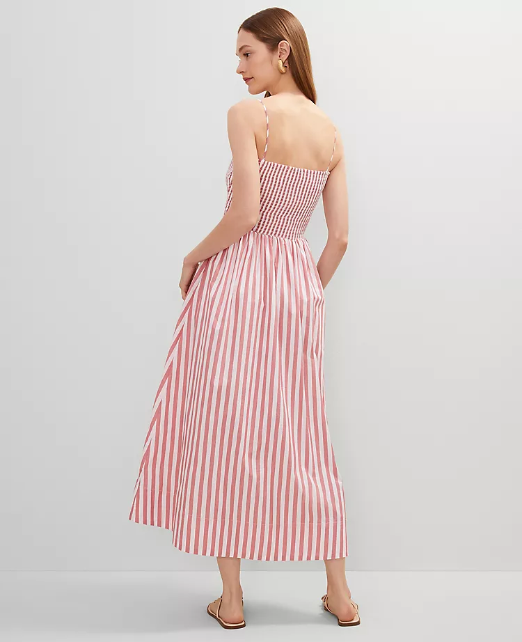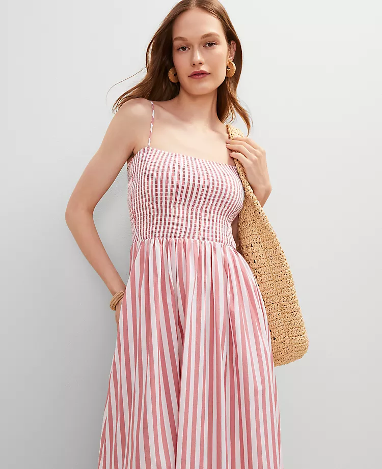 An artfully smocked waist defines the silhouette of this chic and breezy maxi dress. Square neck. Sleeveless. Elasticized waist. Lined body.