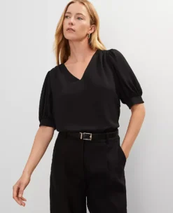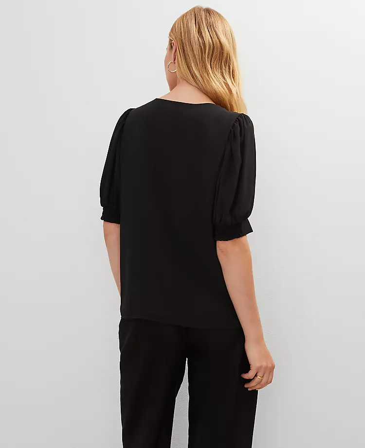 An open neckline gives this relaxed, puffed sleeve popover a effortlessly romantic feel. V-neck. Short cuffed sleeves.
