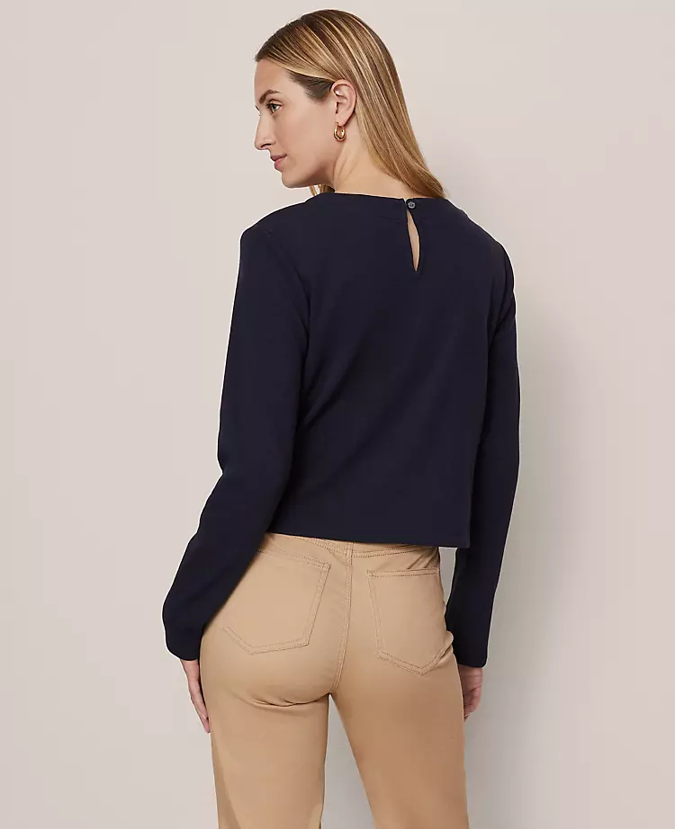 Discover Ann Taylor Weekend. Effortlessly polished pieces for wherever your plans take you. Denim patch pockets give this versatile style an elevated update. Crew neck. Long sleeves.