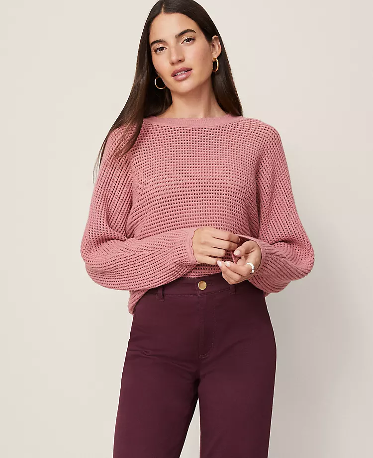 Discover Ann Taylor Weekend. Effortlessly polished pieces for wherever your plans take you. An open stitch design and lovely scalloped edges enriches this must-have sweater. Crew neck. Long sleeves.
