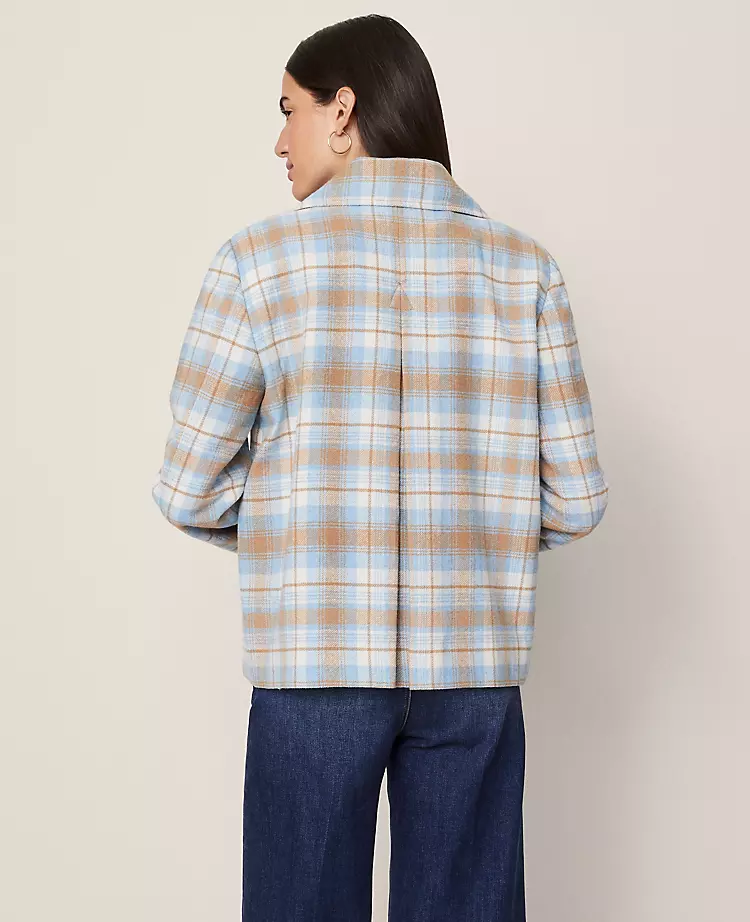 Discover Ann Taylor Weekend. Effortlessly polished pieces for wherever your plans take you. Brighten up chilly days with this plaid coat that’s equally sophisticated and chic. Notched lapel. Long sleeves. Double breasted value front. Angled front welt pockets. Back vent.