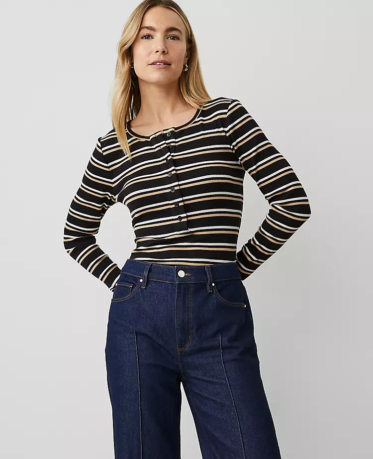 Discover Ann Taylor Weekend. Effortlessly polished pieces for wherever your plans take you. Crew neck. Long sleeves. Button front placket.