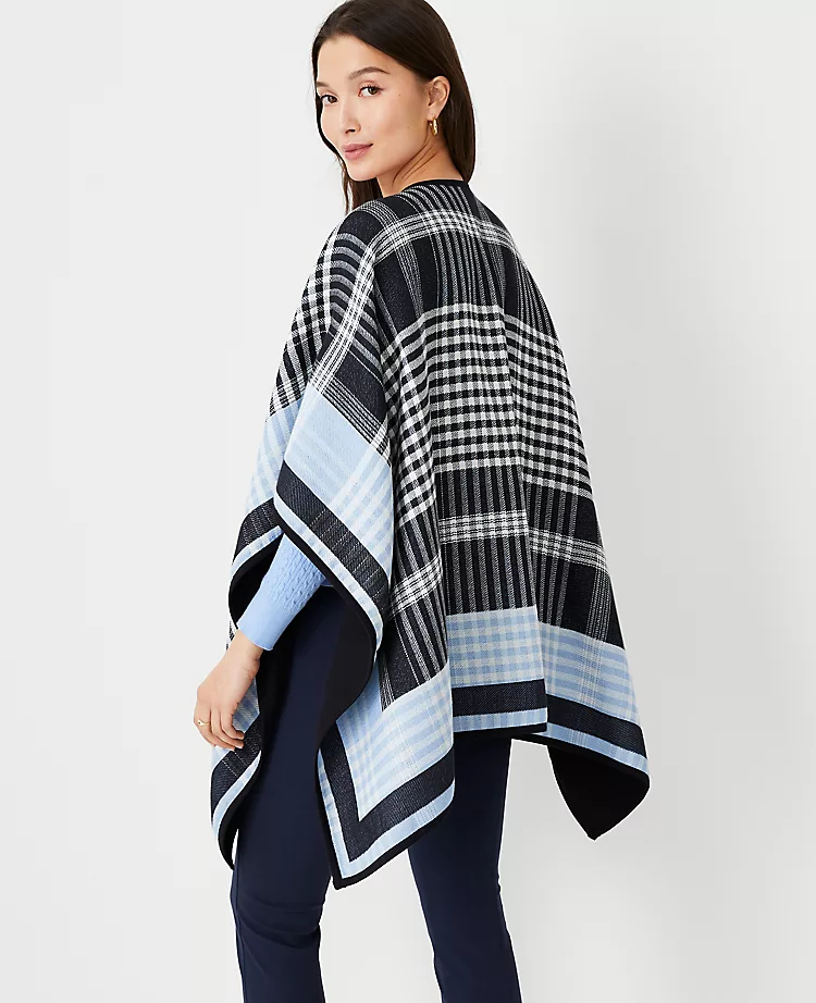 With effortless drape and flow, our plaid open poncho is a flattering layer that’s always at ease. Open front. 3/4 sleeves. 44″ x 59″.