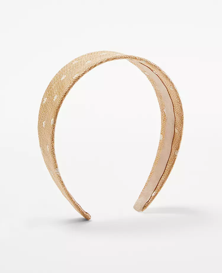 Crown your look with our polka dot headband, for a spot-on way to elevate any ensemble. 5 1/2″H x 4 3/4″W.