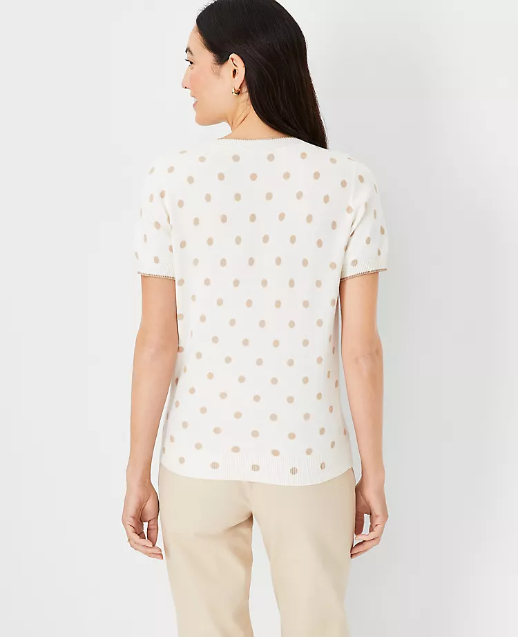 Our short sleeve sweater gives you warmth and style without the weight. Crew neck. Short sleeves. Ribbed neckline, cuffs and hem.