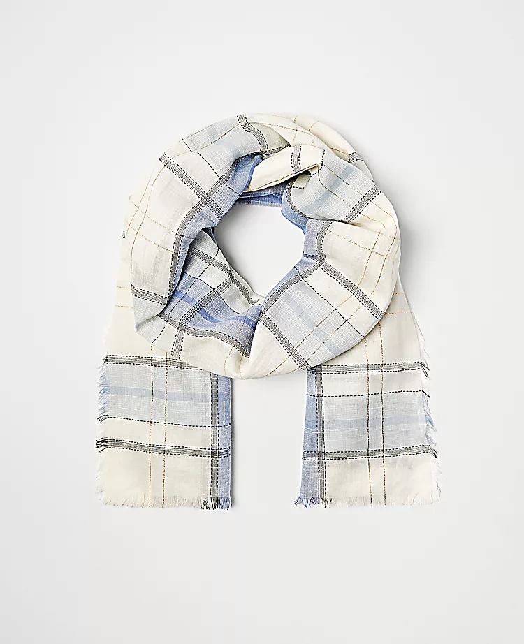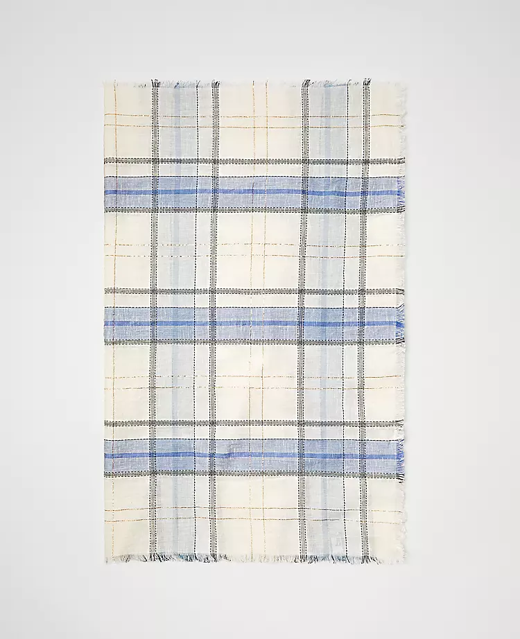 Infused with a hint of shimmer, our plaid scarf tops this season’s checklist. Light fringe at ends.