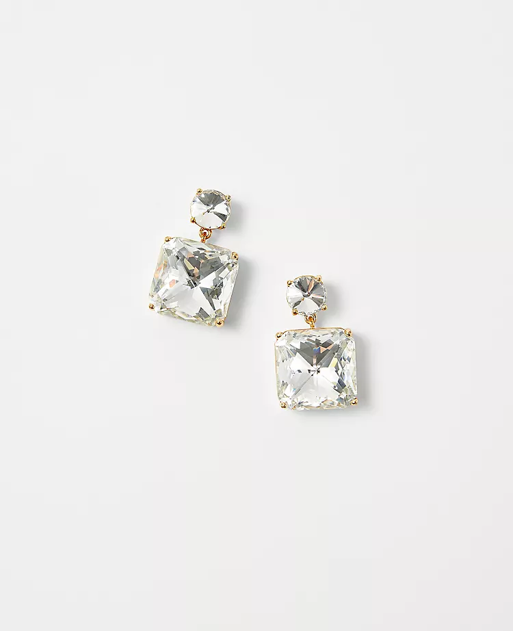 Brilliantly faceted, our square drop earrings flatter from every angle. 1 1/4″ drop.