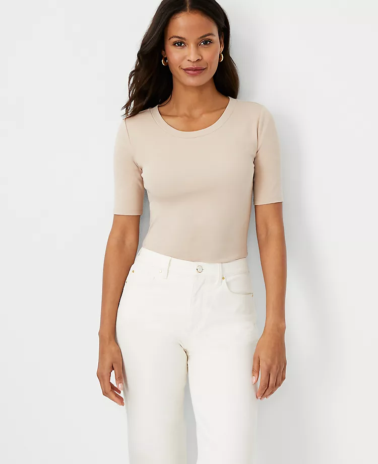 Worn alone or layered, our stretch cotton tee is a style essential – in a palette of have-to-have hues. Crew neck. Short sleeves.