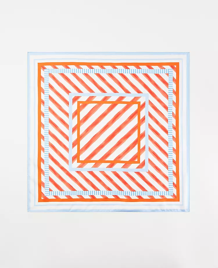 Striped in sun-drenched color, our refined silk scarf appeals from every angle. 25″ x 25″.