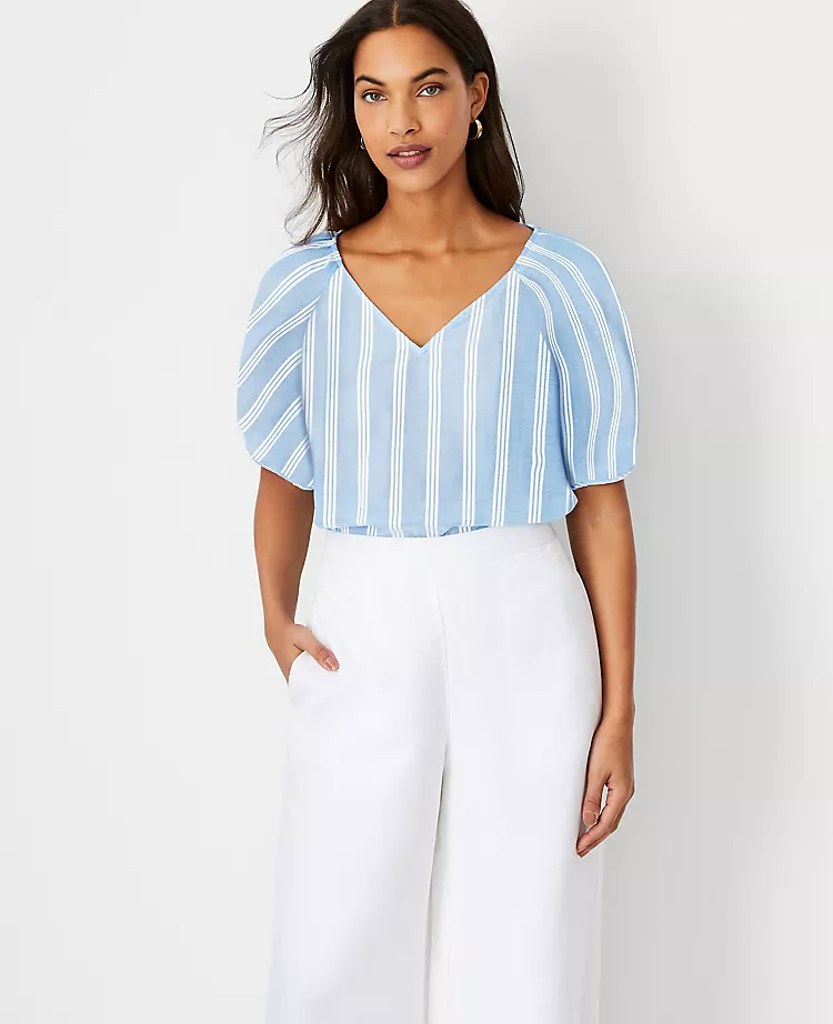 A sleek V-neck paired with puff tie sleeves equals feminine perfection – with a modern twist. V-neck. Short raglan sleeves with ties.