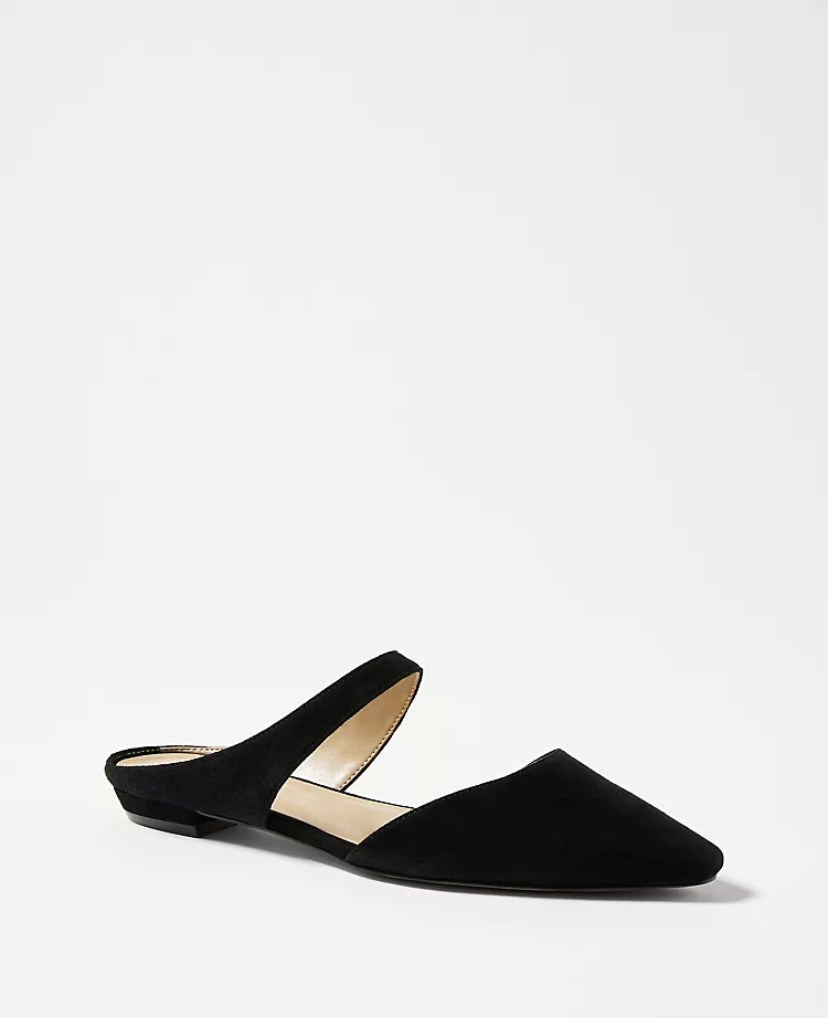Lead the way with our wear-anywhere mule flats, made in buttery-soft suede. Pointy toe. Padded footbed for complete comfort. 1/2″ heel.
