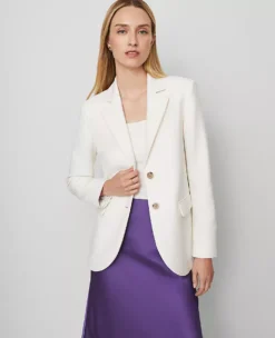 Polished and fresh, this double-breasted blazer works a modern angle on classic tailoring. Peak lapels. Double-breasted value front. Long sleeves with value cuffs. Front flap besom pockets. Lined.