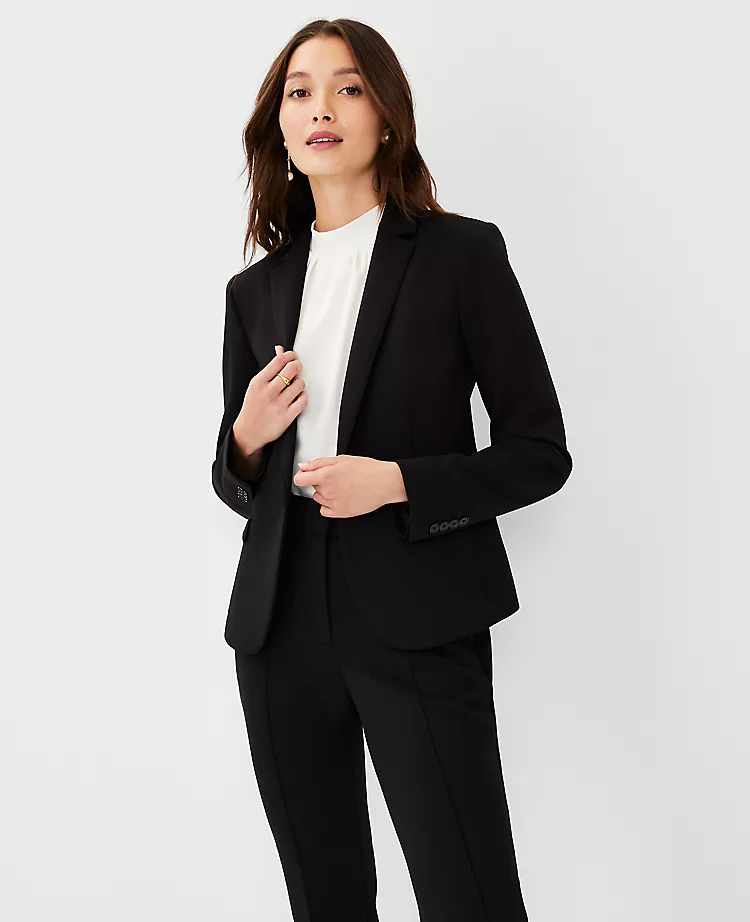 This stretchy yet sophisticated wrinkle-resistant fabric is comfort-chic at its finest. It also plays very well with others—mix and match the collection with ease. Notched lapel. Long value-open sleeves allow for versatility in styling. One value front. Front flap besom pockets. Back vent. Shop all Double Knit Suiting