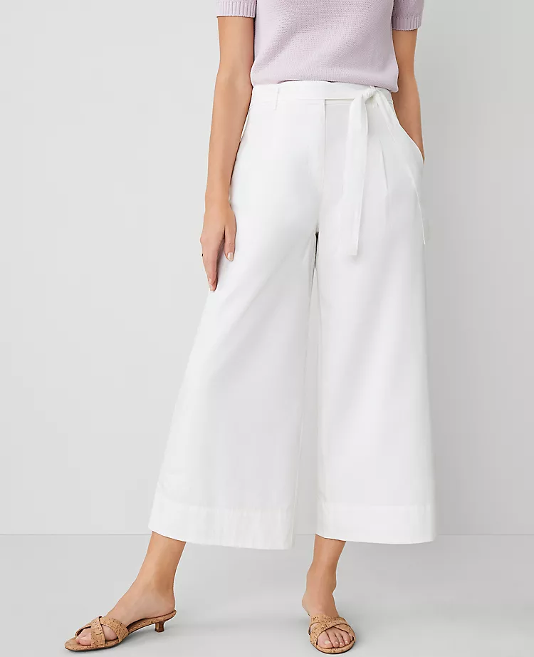 This flattering pant features an easy fit through the thigh and front pleats for extra ease of movement. Front zip with a hook-and-bar closure. Removable tie belt. Belt loops. Onseam pockets. Back welt pockets.